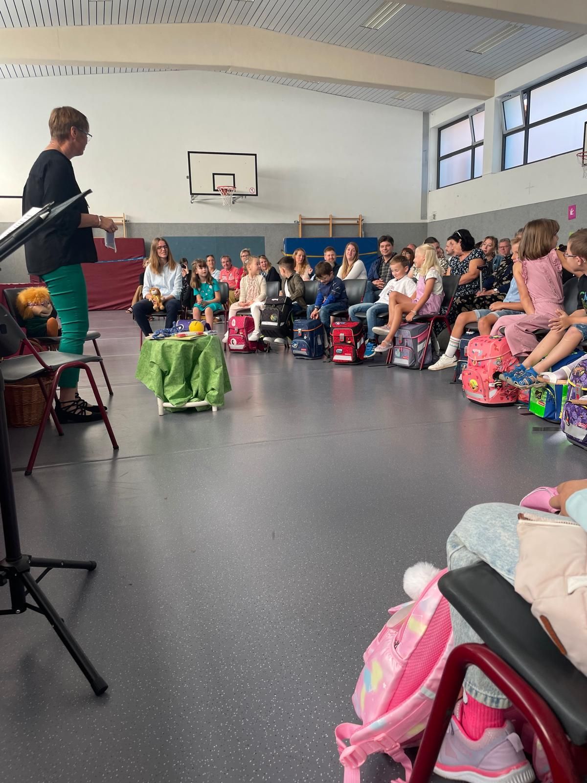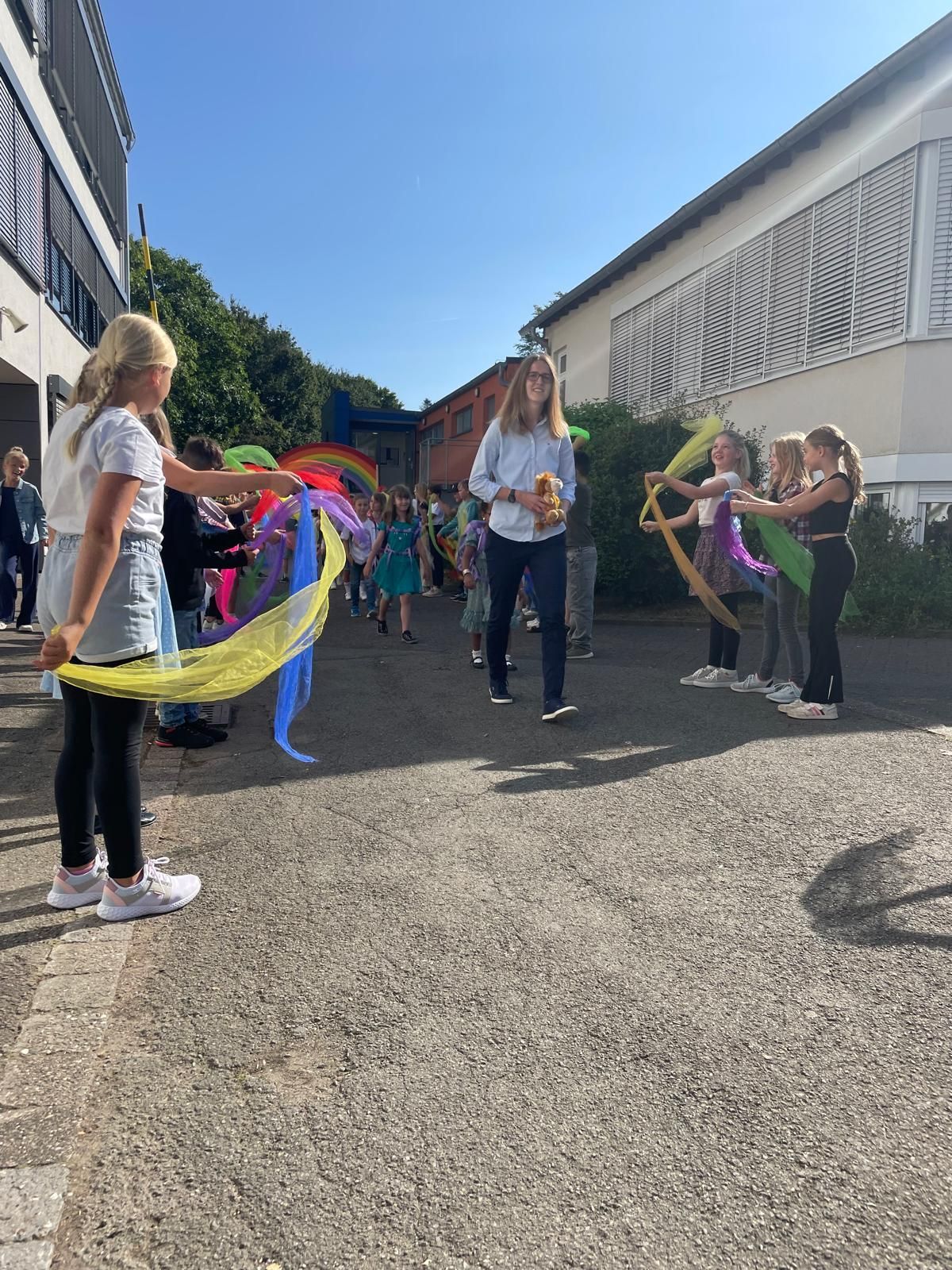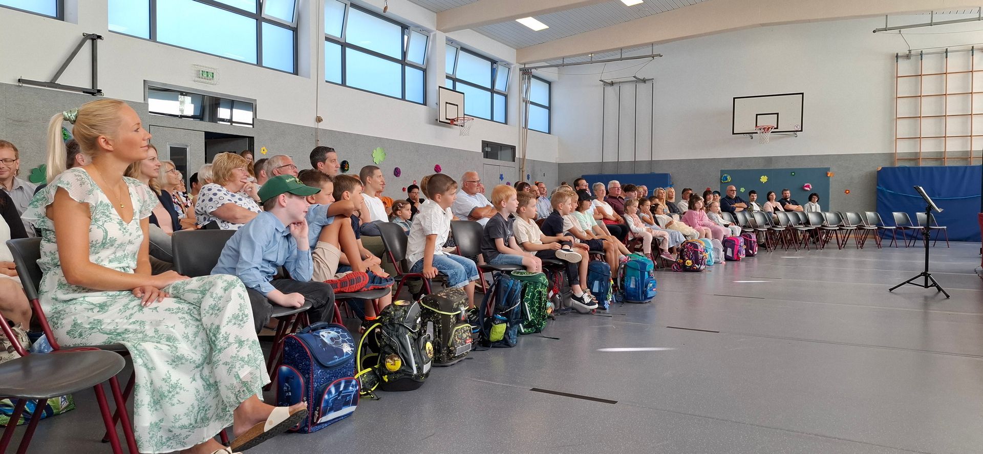 Am zweiten Schultag konnten wir unsere neuen Erstklässler in der Schule begrüßen. Die Klasse 1a von Frau Wissemann und die Klasse 1b von Frau Schäfer sind fröhlich in die Schule eingezogen. Begrüßt wurden sie in einer vergnügten Feierstunde, an der auch die Patenkinder aus den Klassen 4a und 4b beteiligt waren.