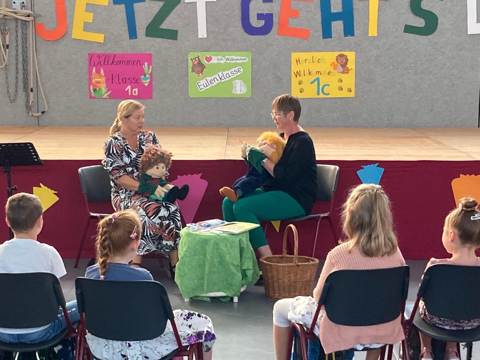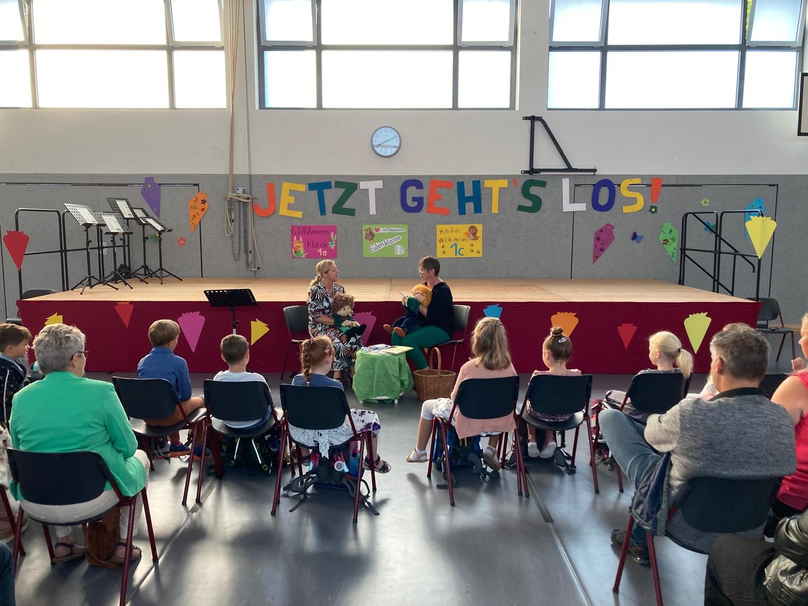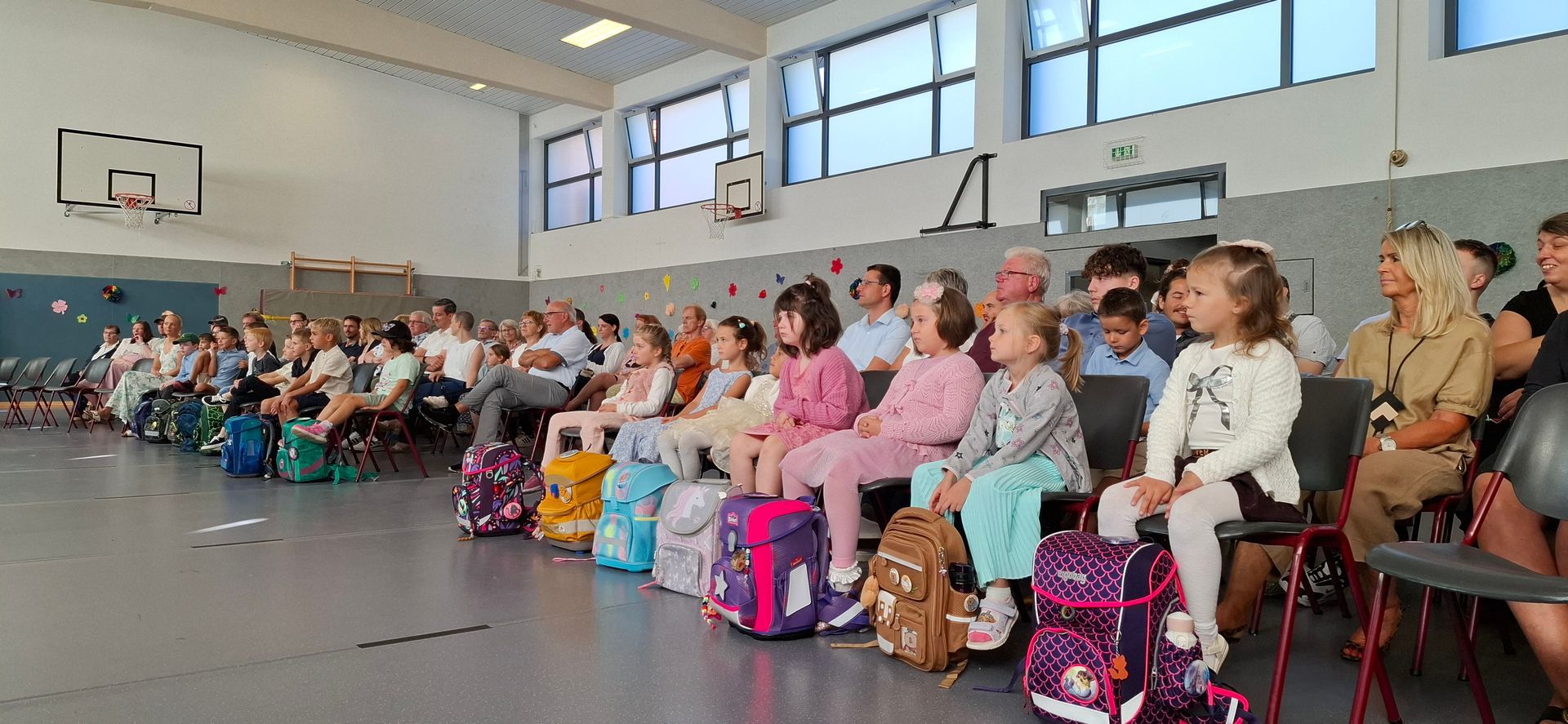 Am zweiten Schultag konnten wir unsere neuen Erstklässler in der Schule begrüßen. Die Klasse 1a von Frau Wissemann und die Klasse 1b von Frau Schäfer sind fröhlich in die Schule eingezogen. Begrüßt wurden sie in einer vergnügten Feierstunde, an der auch die Patenkinder aus den Klassen 4a und 4b beteiligt waren.