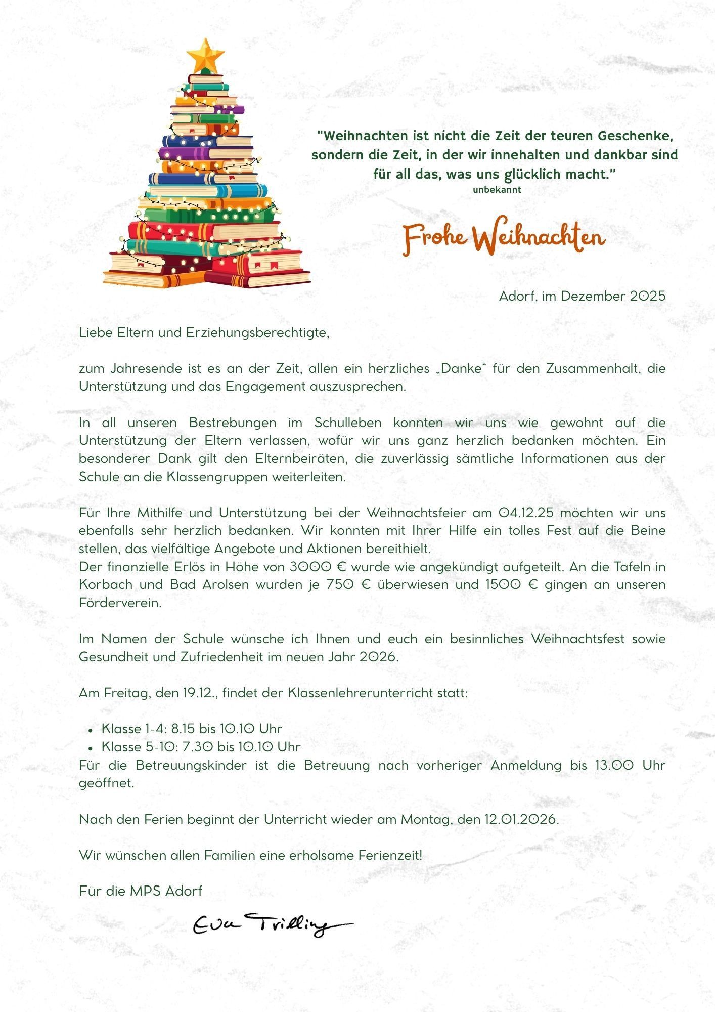 1500 € an den Förderverein der MPS Adorf