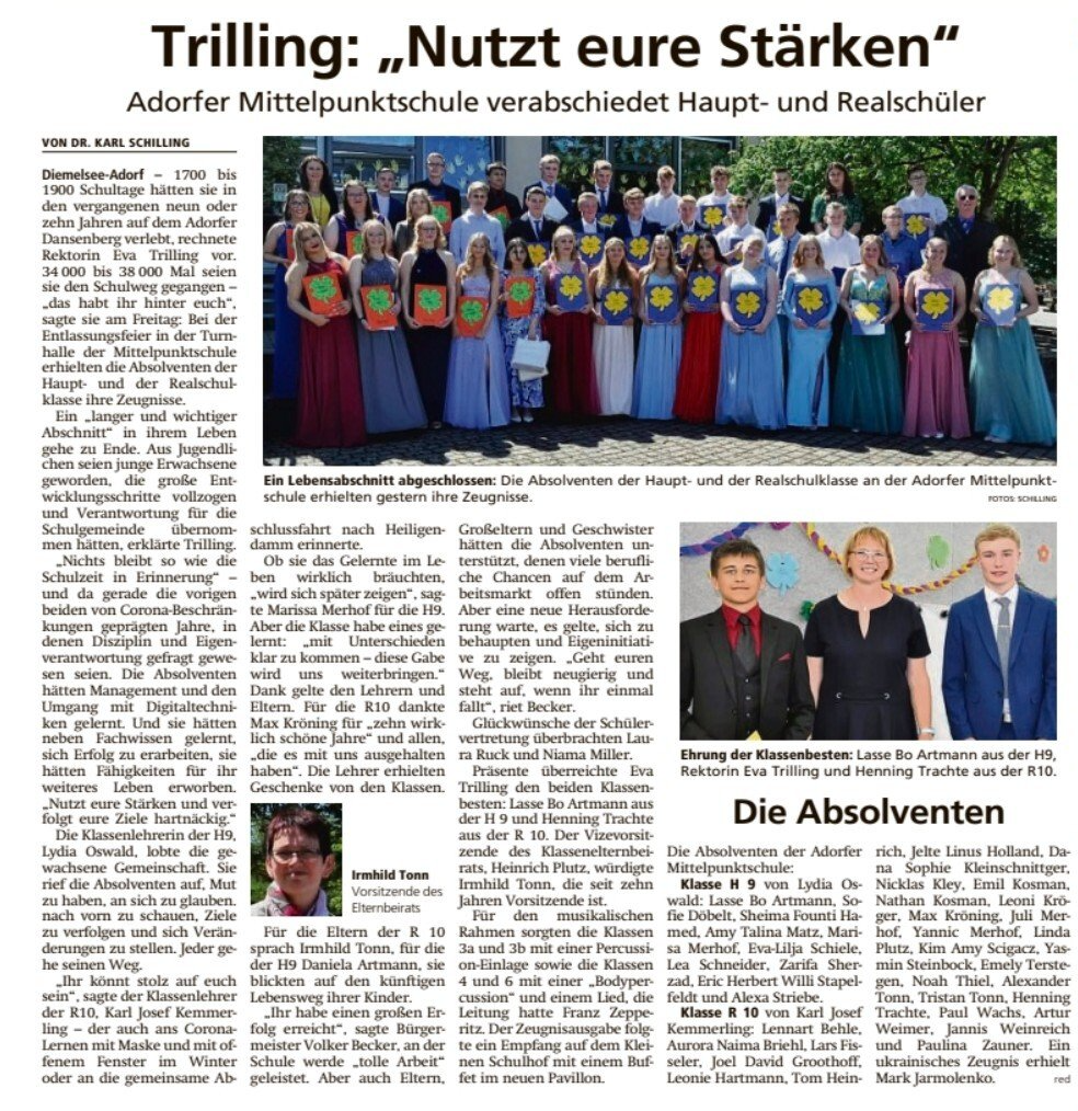 Die Absolventinnen und Absolventen der Haupt- und Realschule wurden am Schuljahresende feierlich verabschiedet und erhielten ihre Abschlusszeugnisse.