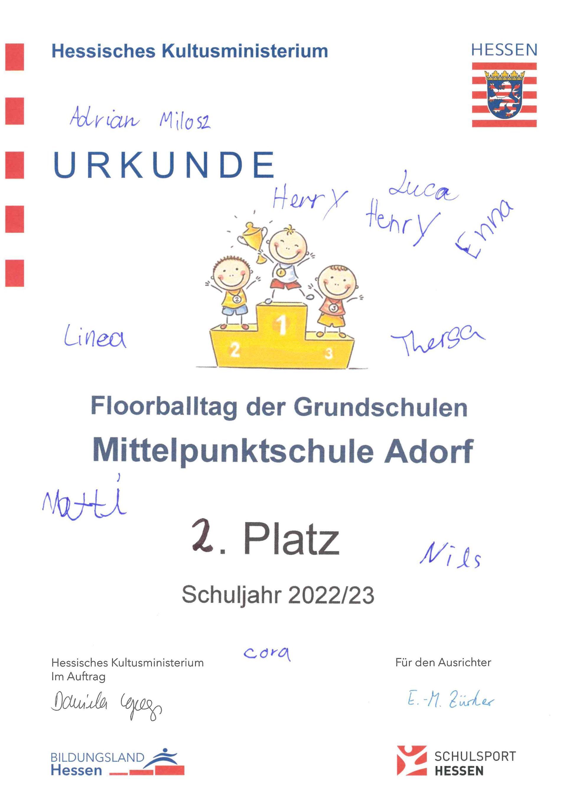 Gleich beim ersten Floorball-Turnier in der Geschichte der MPS Adorf war die Mannschaft der Grundschule erfolgreich und konnte sich einen großartigen 2. Platz sichern. Herzlichen Glückwunsch!